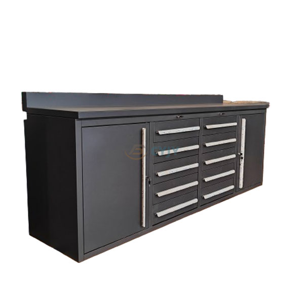 यसैबीच, वर्कबेन्च दस दराजले सुसज्जित छ, विभिन्न उपकरणहरू, कम्पोनेन्टहरू र उपभोग्य वस्तुहरूको लागि पर्याप्त भण्डारण ठाउँ प्रदान गर्दछ। प्रयोगकर्ताहरूले विभिन्न उपयोग आवश्यकताहरू अनुसार उपकरणहरू वर्गीकरण र भण्डारण गर्न सक्छन्, यसलाई खोजी र व्यवस्थापन गर्न सुविधाजनक बनाउँदै।